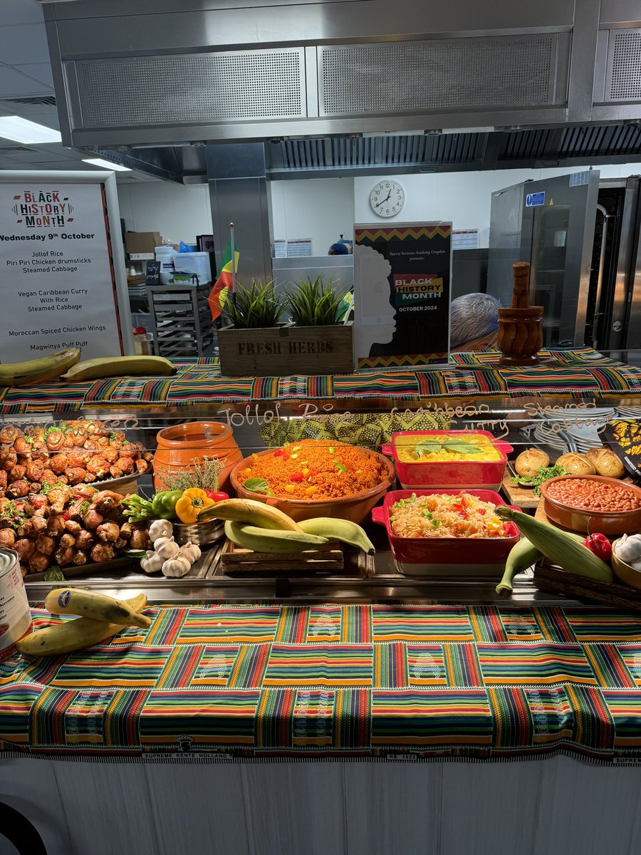 Today we celebrated Black History Month in the Canteen! Chef and the kitchen team prepared a feast today, for staff and students to enjoy! Thoroughly enjoyed by all! #BHM2024 @SchoolCatering @HarrisFed pic.twitter.com/V57c1SVTRw
